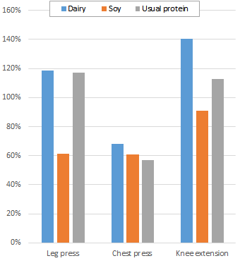 A study of 179 people age 60+ undergoing resistance training has found dairy protein to be superior to soy protein for strength(